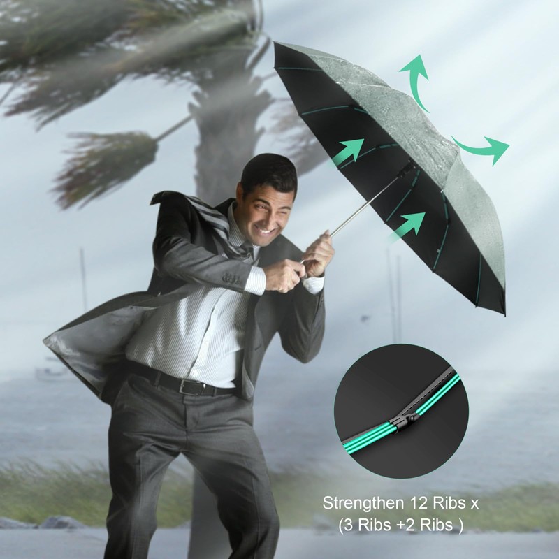 ZUOYOUZ Folding Travel Umbrella Windproof Strong,Upgrades 12 Ribs(3+2Ribs) Auto Open/Close Windproof Rain Umbrella Portable Backpack Folding Large Umbrella for Men and Women