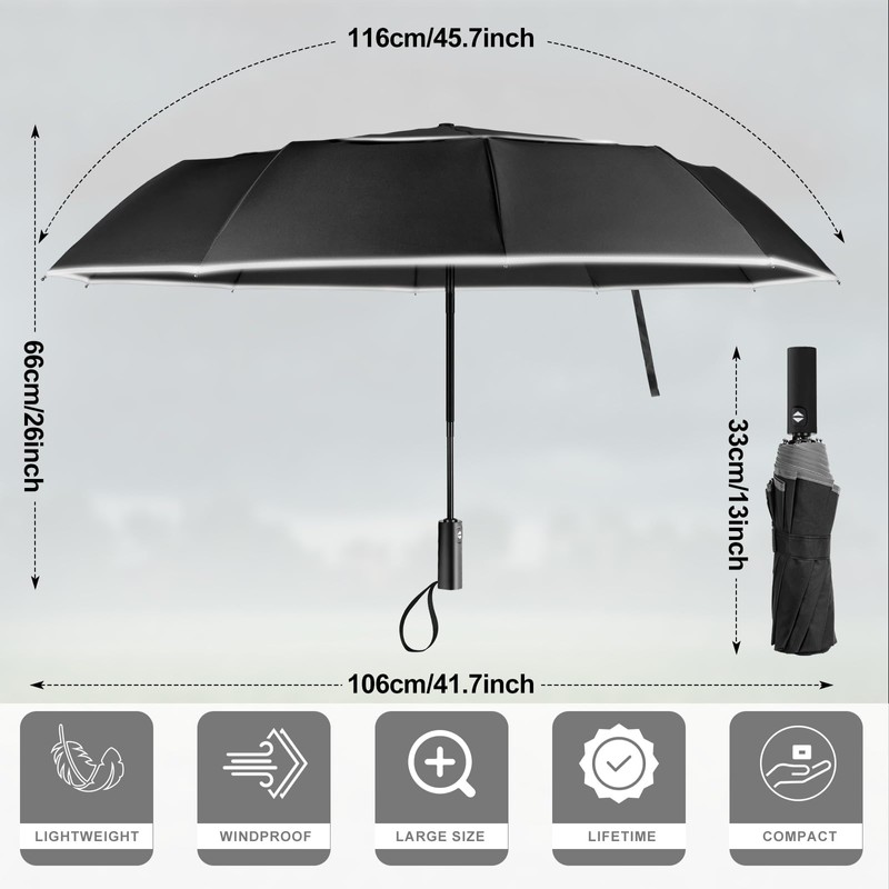 - Satey Reflective Strips:The reflective strip umbrella can reflect the surrounding light in dark rainy night or dark weather, which can attract the attention of vehicle drivers and passers-by and improve safety.
