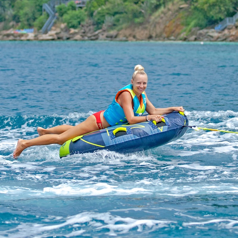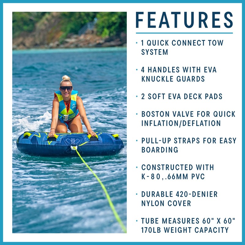 - QUICK CONNECT TOW SYSTEM: Makes it easy to connect the rope to the tube for more convenience, so you can start enjoying your water soiree in no time