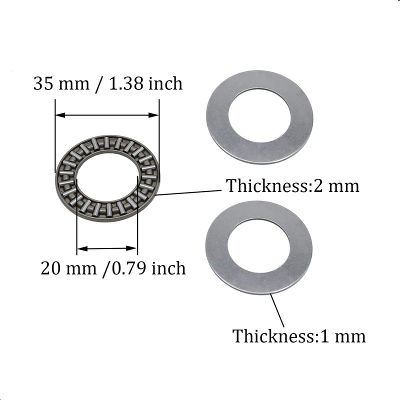- Bearing Model: AXK2035 (I.D.=20mm, O.D.=35mm, Thickness=2mm); Washer Model: AS2035