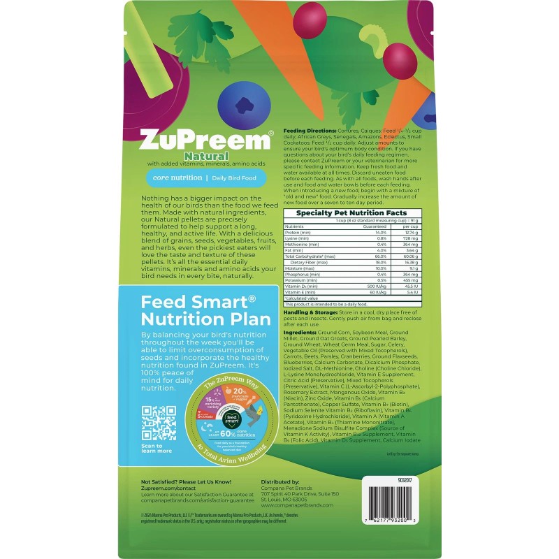 - CONVERT YOUR BIRD TO A HEALTHIER DIET. Converting your bird to a food that includes pellets is worth the effort for his/her health and wellbeing. ZuPreem has been dedicated to producing innovative, high-quality products since 1967.