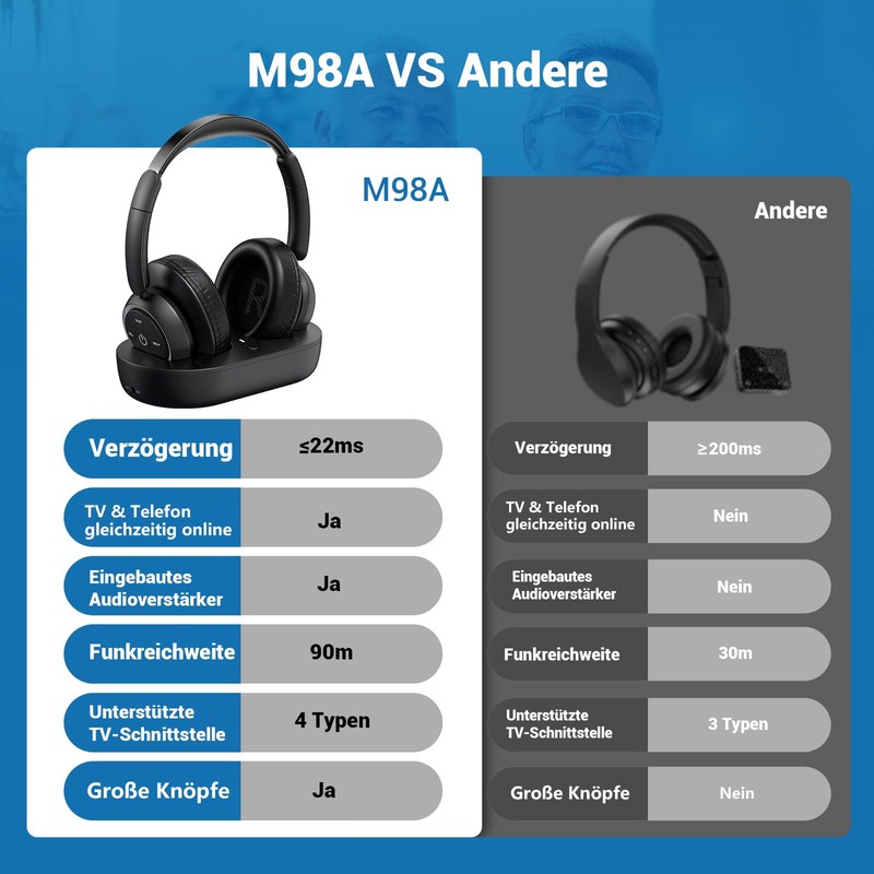 - Low Latency Visual-Audio: Our ZUPVIY wireless headphones for TV featuring latest wireless 2.4 GHz technology (NOT Bluetooth), it provides no audio delay. You can watch football matches with our TV headphones, which feature the perfect combination of lip reading and audio, and experience every exciting moment in real-time.