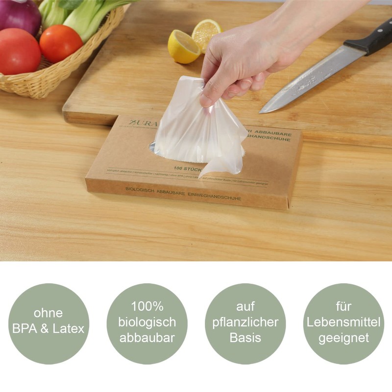 - Tear-resistant and durable: the sustainable disposable gloves are water and heat resistant. The vegetable material can withstand normal household uses.