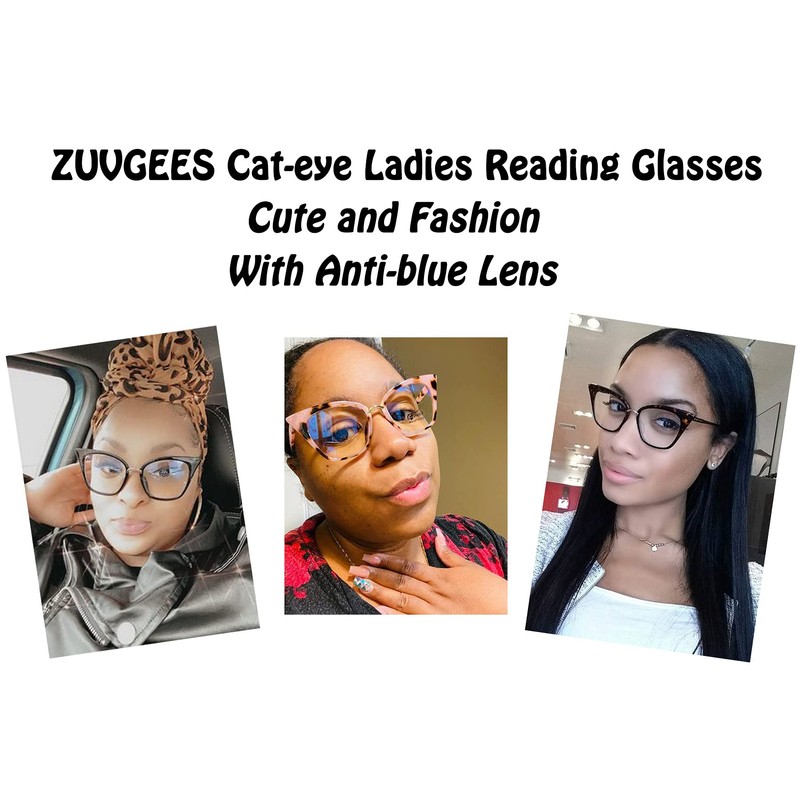 ZUVGEES 2 Pack Womens Cute Oversized Cat Eye Blue Light Blocking Reading Glas...