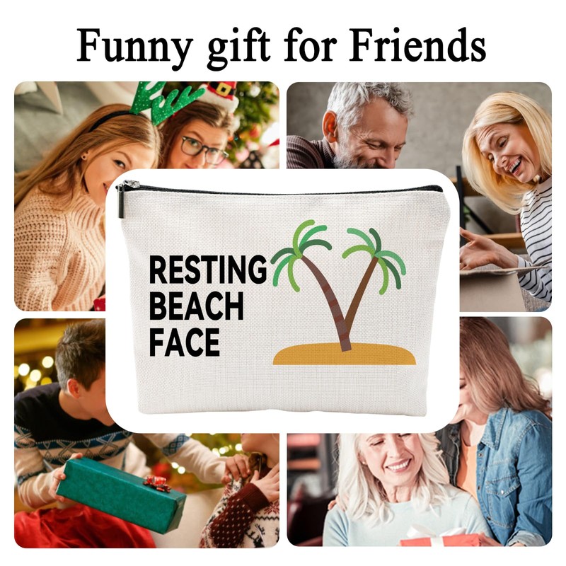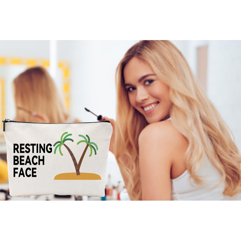 ZUYUROU Funny Makeup Bag for Women, “Resting Beach Face Cosmetic Pouch – Tropical Travel Bag for Beach Lovers, Summer Vacation Gifts for Girls, Friends, and Coworkers