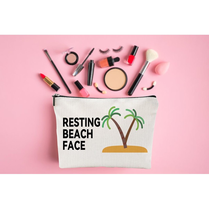 - Fun & Sassy Design – Featuring the phrase "Resting Beach Face" with a cute palm tree illustration, this makeup bag is perfect for beach lovers with a sense of humor.