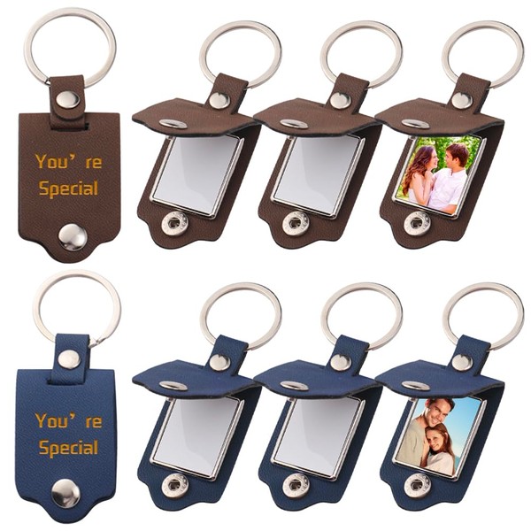 ZUYYON 8 Pcs Sublimation Blank Photo Leather Keychains Laser Engraving Picture Frame Keyring DIY Blank Leather Key Chains, Brown, Blue, One Size