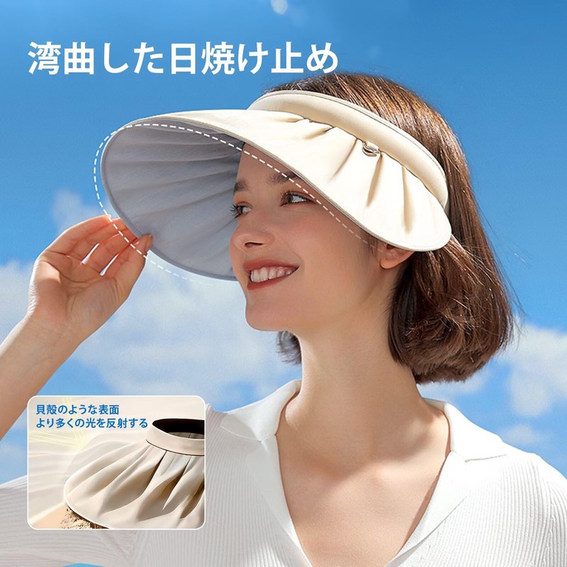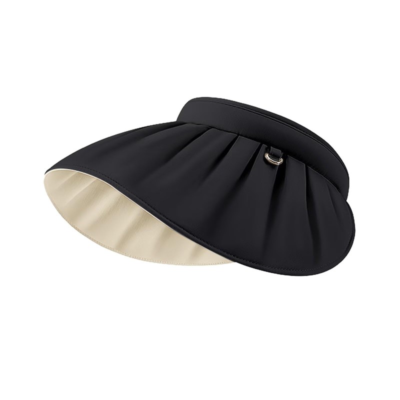 [ZVCXOE] サンバイザー レディース 春夏 サンハット UVカット り 通気 吸汗速乾 ハット つば広 UPF+50 小顔帽子 軽量 可頭飾 日焼け防止 飛ばない 折りたたみ 水洗い おしゃれ 自転車 テニス ゴルフ 旅行 ビーチ ブラック