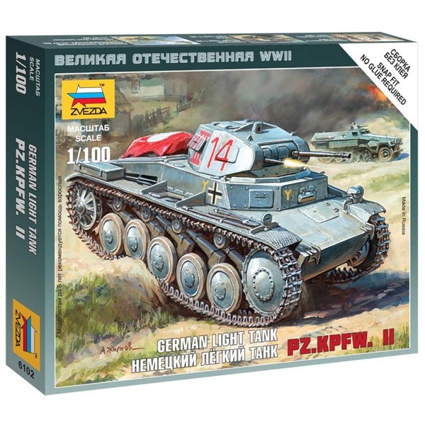 Zvezda Models 1/100 German Panzer II (Snap Kit)