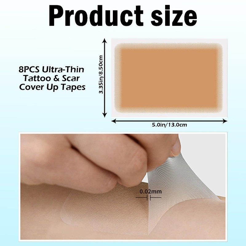 - ✂️【Cuttable Convenience】The single - sheet size of these tattoo cover - up stickers is 4.1*2.8in, with 8 sheets in a set. You can cut them to the desired size to cover almost all tattoo sizes and avoid skin tightness and stuffiness.