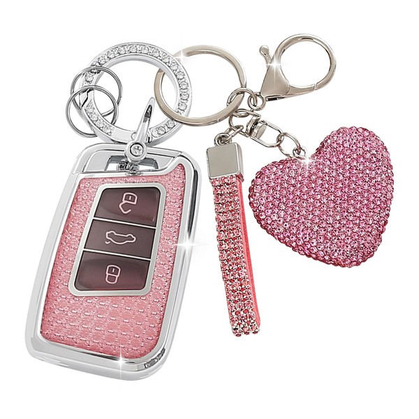 - Unique car accessory: the car key case set comes with a heart-shaped key ring with sparkling rhinestones. The combination of glitter and cuteness is a great gift for women, it shows your personality and makes it easier to find your car keys