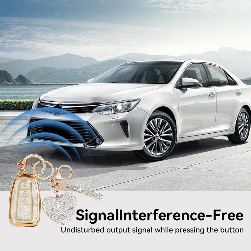 - Sophisticated premium design: the ultra-light car key case guarantees uninterrupted signal transmission of the remote start function. The exact fit does not cover the original logo or affect the control buttons. The rhinestone diamond keyring with heart design adds elegant glamour to any keychain - ideal for fashion-conscious motorists