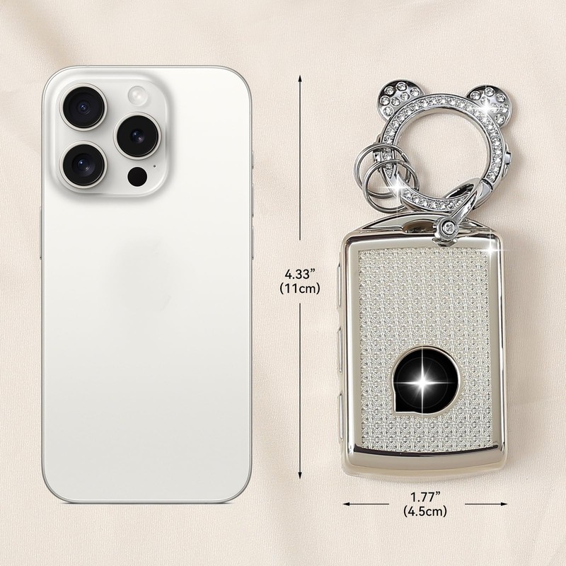 - Unique design: the key box cover has a fully wrapped design, and the buttons fit perfectly without blocking the original car logo, while ensuring the signal transmission of the remote control key. The cute, diamond-studded keyring in bright silver makes it easier to carry your car keys