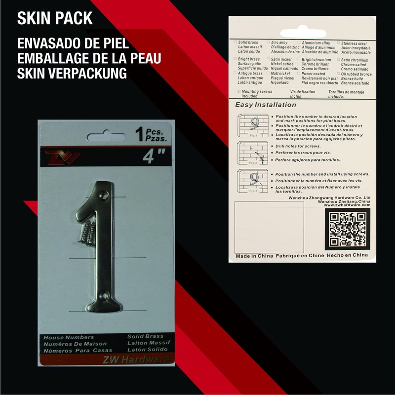 ZW Hardware A200 4 Inch Brass Matt Nickel Plated House Number 1