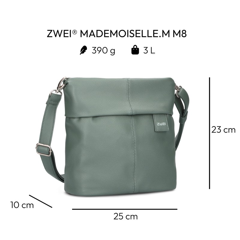 Zwei Mademoiselle.M M8 Women's Crossbody Bag 3 L Faux Leather Shoulder Bag with Secret Compartment & Main Compartment with Zip Includes Short & Long Removable Shoulder Strap, Eucalyptus