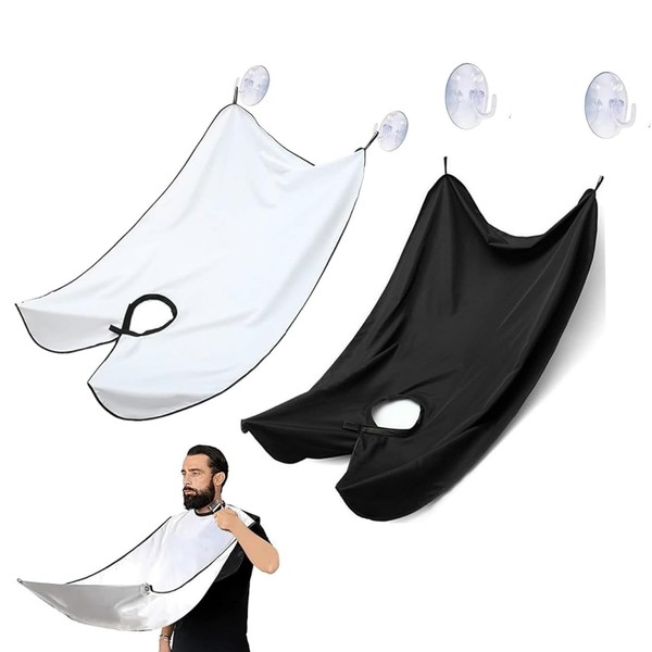 Zwenjuan Beard Apron, Pack of 2 Bibs for Beard Design, Beard Apron for Beard Design, Waterproof Non-Stick Hair Catcher Care Cloth, with 4 Suction Cups, Gifts for Men, White