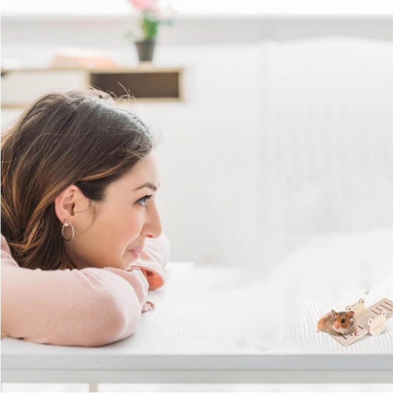 Zwenjuan Hamster Toy Wooden Hamster Hideout House DIY Bridge Rocker, Bridge Seesaw for Chinchillas, Gerbils, Rabbits, Guinea Pigs, Gerbils, Mice, Mouse