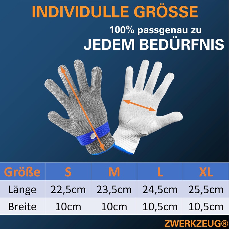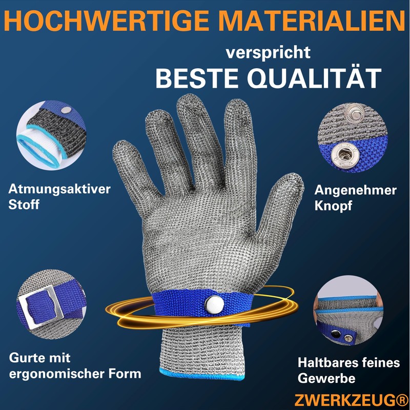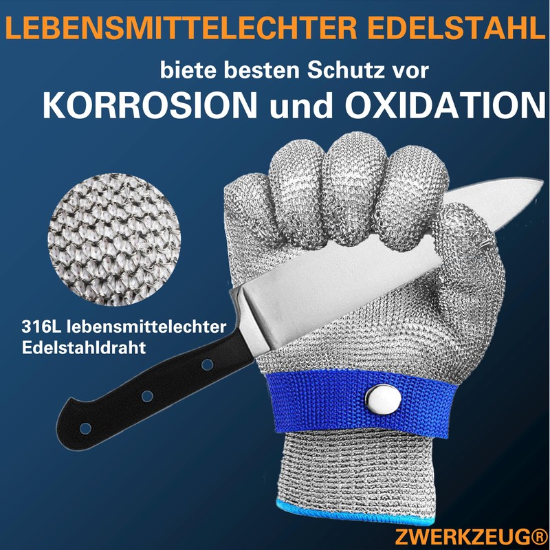 ZWERKZEUG Schnittschutzhandschuhe, Lebensmittelqualität Level 9 Schutz Edelstahl Draht Metall Mesh Arbeitshandschuhe, hoher Komfort & sicheres Schneiden, Baumwolle Handschuhe gratis dazu!