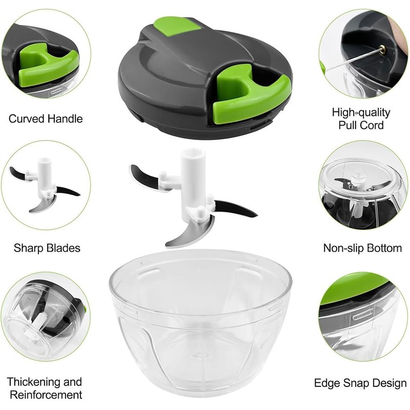 - 【Einfache Bedienung】Hacken/Zerkleinern / Mischen Sie Ihre Zutaten, indem Sie den Ring einige Male ziehen (ein Zug = sechzehn Mal geschreddert), wodurch Sie viel Zeit sparen. Dies ist ein Qualität Zwiebelschneider für Ihre Küche.