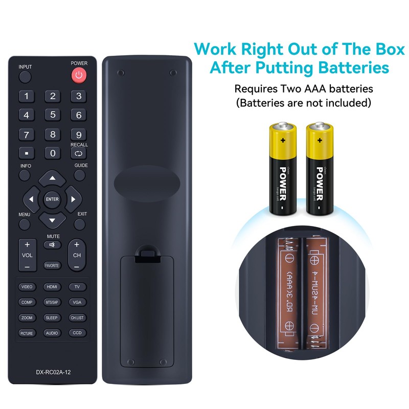 ZWP DX-RC02A-12 Replacement Remote Control fit for DYNEX LCD LED TV DX-42E250A12 DX-37L200A12 DX-46L261A12 DX-19L200A12 DX-32L221A12 DX-32L200A12 DX-24L150A11 DX-26L150A11 DX-32L150A11 DX-37L150A11