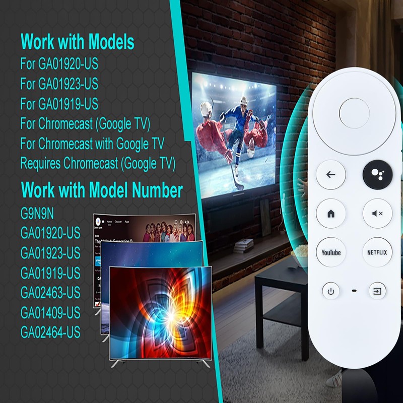 ZWP Replacement Voice Remote Control for Google Chromecast 4k Snow Streaming Media Player G9N9N GA01920-US GA01919-US GA01919-US GA01919REM GA02464-US GA02463-US GA01409-US GA01923-US (Remote ONLY)
