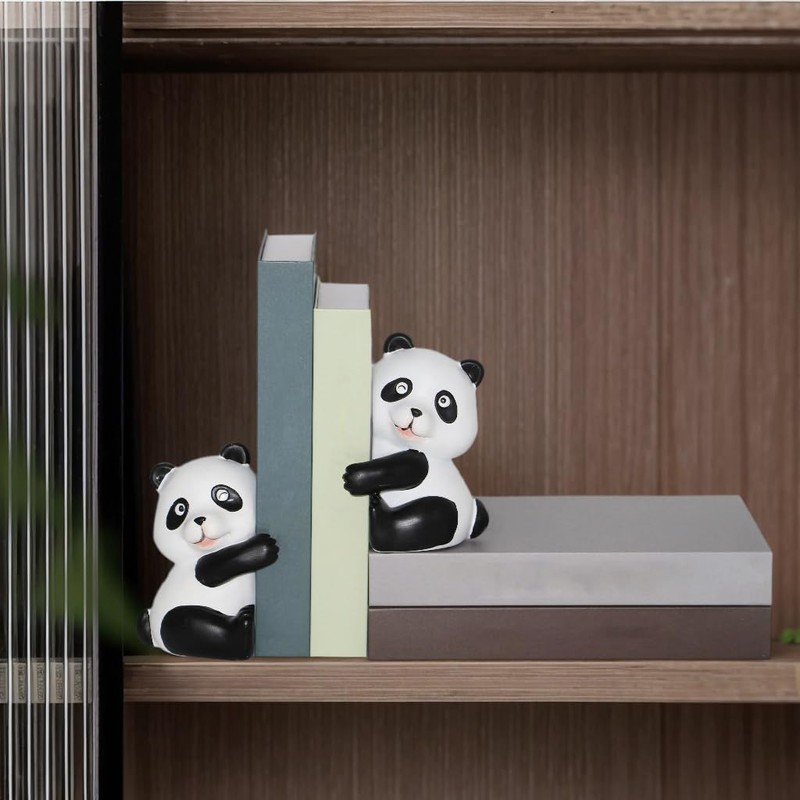 ZXFINTV Cute Pandas Decorative Bookends,Unique Animal Book Ends,Creative Resin Statue Hugging Panda,Holder Stopper for Home Office Desk Bookshelf Decoration
