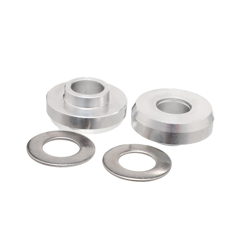 Transform your BMX bike's versatility with this precision-engineered axle adapter kit. These 3/8" to 14mm adapters are crafted from premium 7075 aluminum, offering exceptional strength while keeping weight to a minimum. Perfect for both park and street riding, this pair of adapters comes complete with washers for a secure fit. The adapters allow riders to use 14mm axle pegs with 3/8" axle hubs, expanding your bike's capabilities for grinding and technical tricks. The robust construction ensures these adapters can handle the demands of aggressive riding styles, while the precise machining guarantees smooth installation and optimal performance. Whether you're upgrading your current setup or building a custom ride, these adapters provide the perfect solution for riders looking to enhance their BMX experience.
