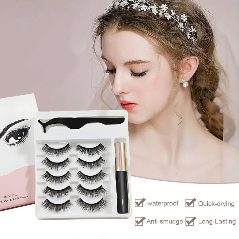 ZXUPOI 5 Pairs of Magnetic Eyelashes, Magnetic Eyelashes with Eyeliner, Artificial Eyelashes, Magnetic Waterproof, 3D Magnetic Eyelash Set with Eyeliner, Magnetic Lashes, Soft False Eyelashes