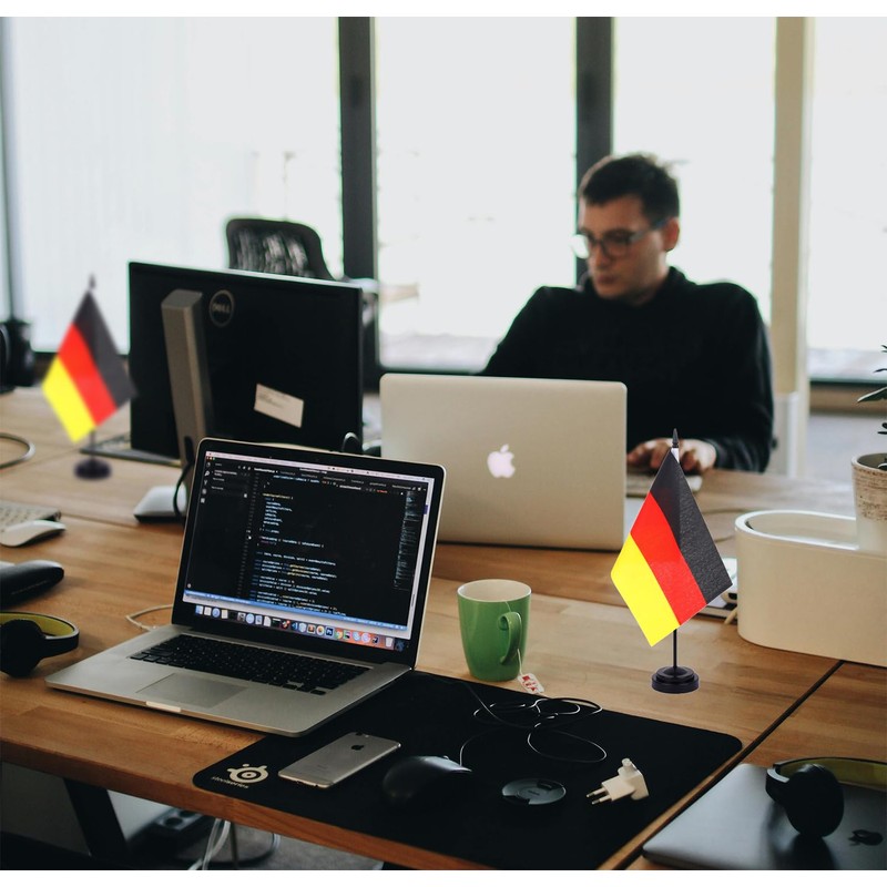 ZXvZYT Germany Flag Banner Germany Desk Flag Set Small Mini German Office Table Stick Flags with 12" Solid Pole Black Stand Base Decorations (12 Pack)