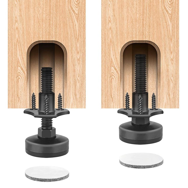 - Protect your floors with:In addition to stopping rocking and reducing vibration from unfinished floors, these heavy duty furniture leveling feet come with a felt pad as a base to prevent direct contact between the furniture legs and the floor, protecting your floors, tiles, or carpets from damage or scratches. No noise will be heard when moving or sliding the furniture.