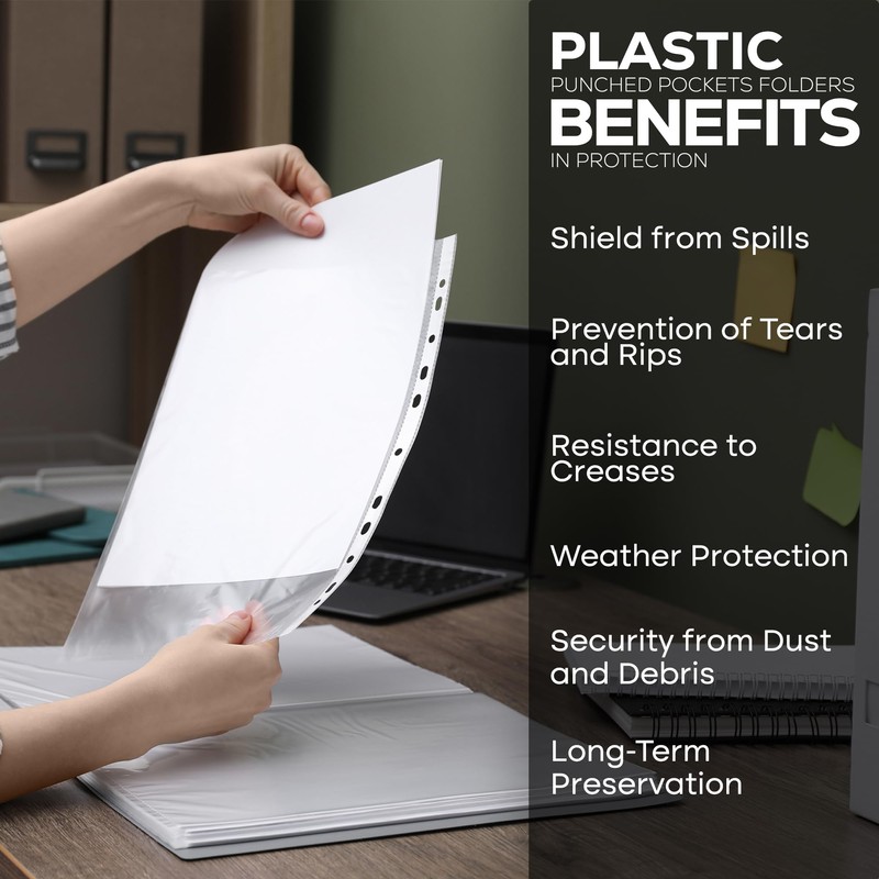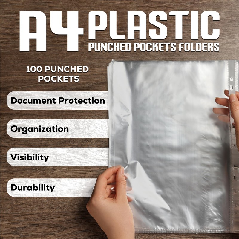 ZYBUX - 100 X A4 Plastic Punch Punched Pockets FOLDERS Filing Wallets Sleeves