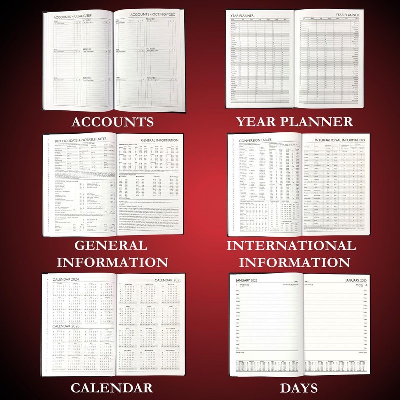 - ✔️ 📓Daily Planner has a hardbound cover with a bookmark that can be used, on the cover there is a silver foil writing. Pages for taking notes, pages with addresses, phone numbers, fax numbers and email addresses.
