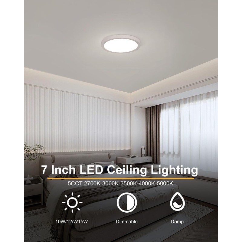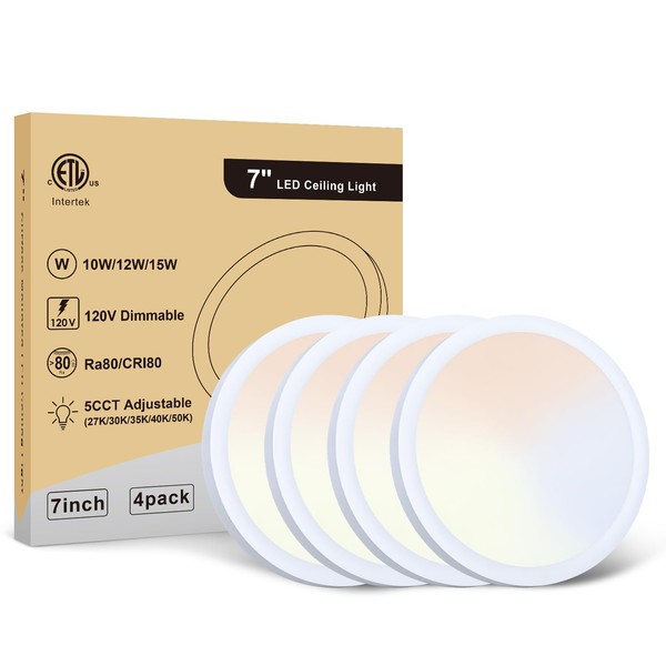 ZYC 7 Inch LED Flush Mount Ceiling Light - LED Ceiling Light Flush Mount, 4 Pack White Flat Fixture 5CCT 2700K-5000K, No Flicker Lamp for Porches, Stairs, Basements, Living Room (4 Pack C-7 IN, White)