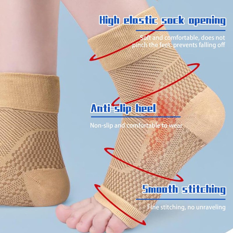 - FULL FUNCTIONS Plantar fasciitis socks have shock absorption and slip protection functions, absorb moisture and sweat, and have an antibacterial and deodorizing effect. The cushioning reduces pressure on the soles of the feet, the anti-slip properties prevent slipping during sports, the moisture absorption and breathability keep the feet dry and the antibacterial and deodorising properties prevent odours. The shoe also exerts 360° compression to promote blood circulation, effectively relieve the discomfort of plantar fasciitis and protect the health of the feet in every way