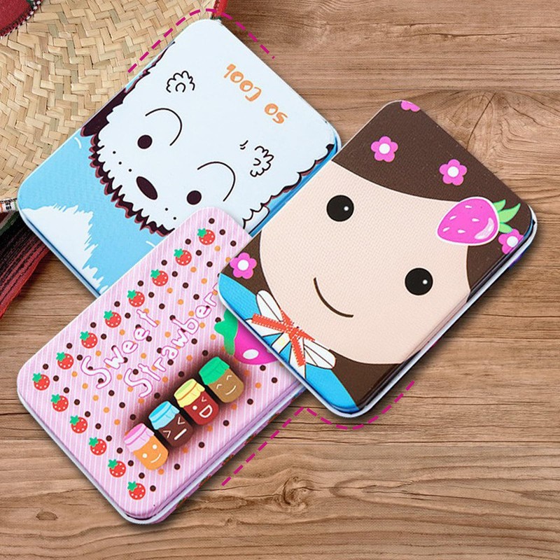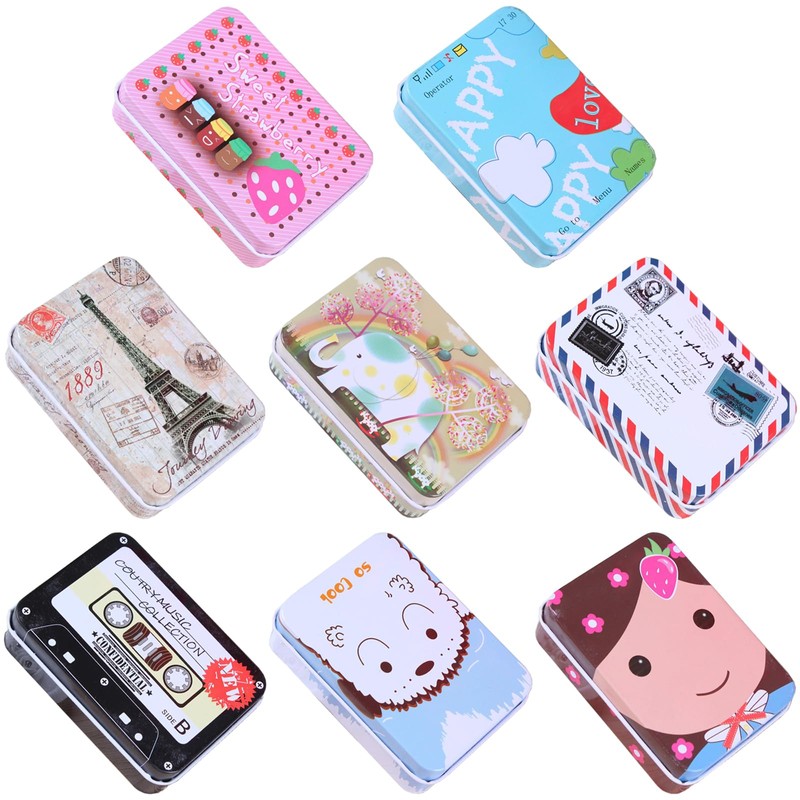 ZYEKIU Pack of 8 Rectangular Metal Tins with Lid, Dustproof Cartoon Small Metal Tin, Portable Tinplate Storage Box, Small for Home Storage and Small Items