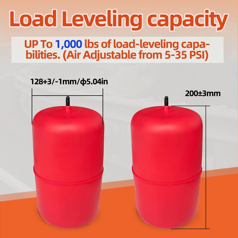 - REPLACES OEM NUMBER - 60804, up to 1,000 lbs of Load leveling capacity. (Note: Each air spring bags assembly is thoroughly tested to make sure OE fit)