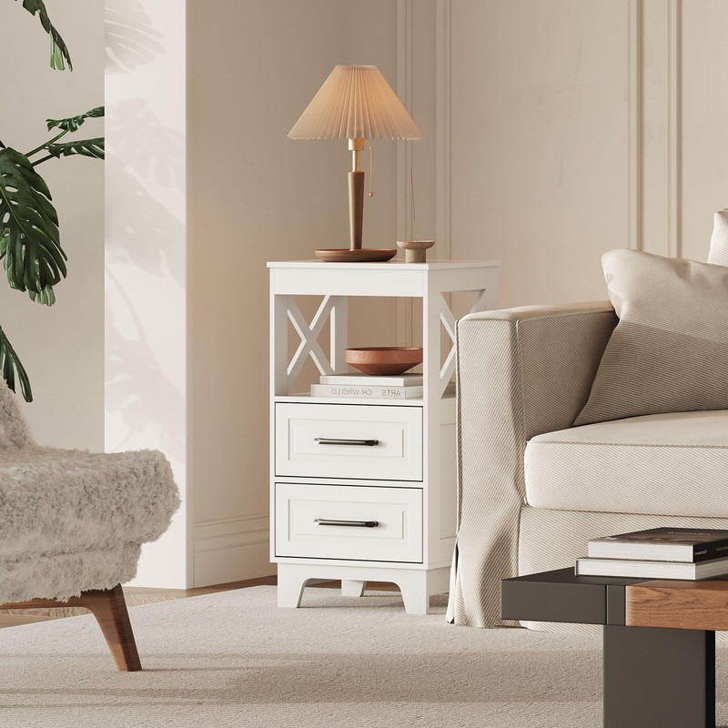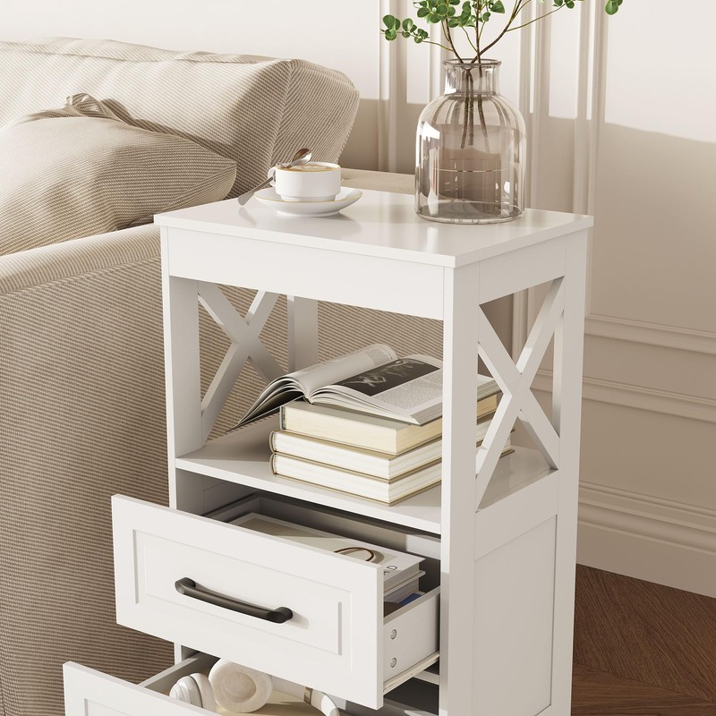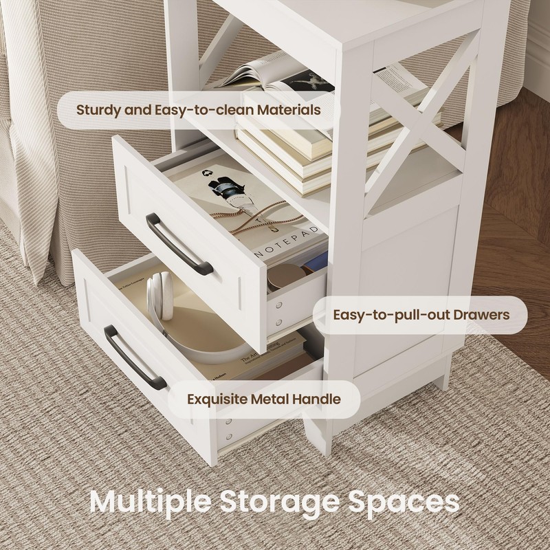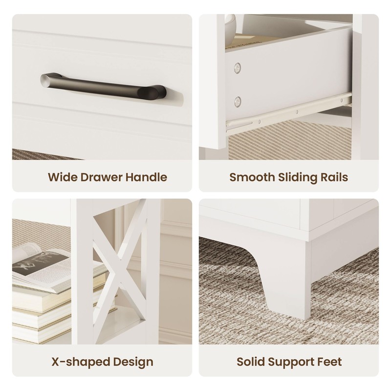 Built to Last: Crafted from sturdy MDF board with a unique X- shaped frame, our nightstand ensures excellent stability and durability, holding up to 100 lbs. Its water-resistant painted surface is easy to clean with just a quick wipe.