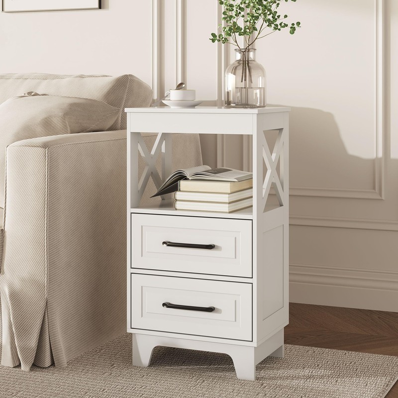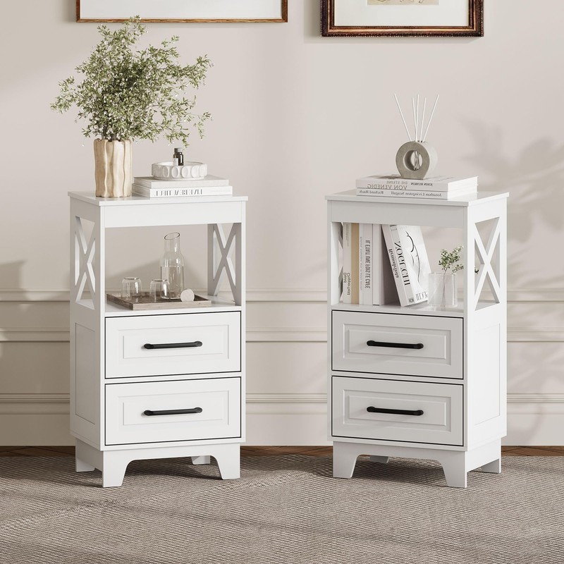 ZYKZYK Tall Nightstand Set of 2 Side Table with 2 Drawers Modern Night Stand Wooden End Table Bedside Table with Upper Open Shelf Solid Feet for Bedroom, Living Room, White