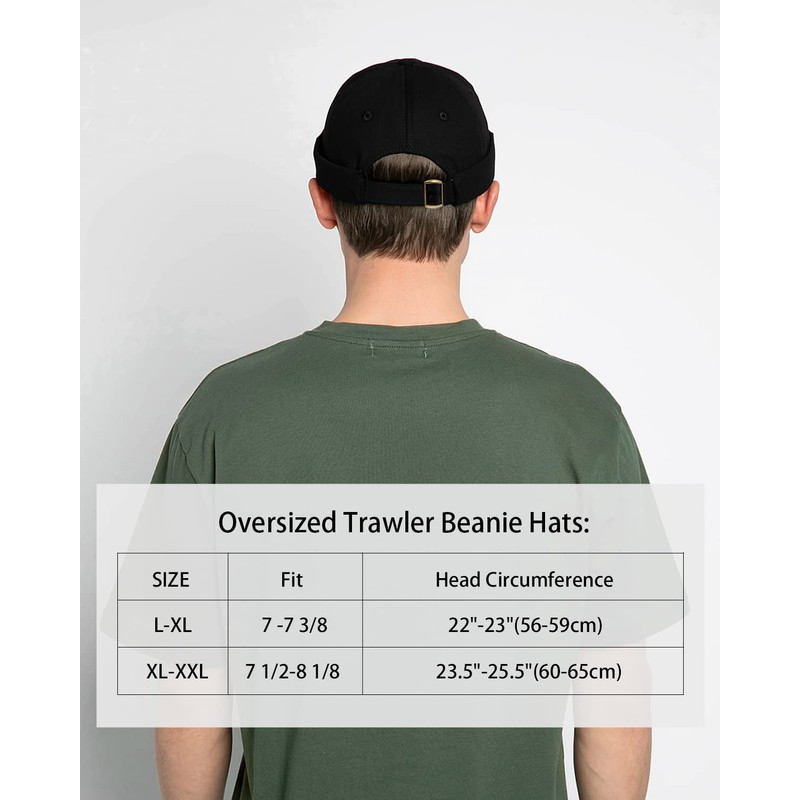- XXL docker cap: Zylioo docker hat for large head, XL-XXL is suitable for large heads of 60-64 cm, L-XL is suitable for normal heads of 56-59 cm. Large trawler fisherman beanie protects the head well but does not cover the ears. With adjustable buckle.