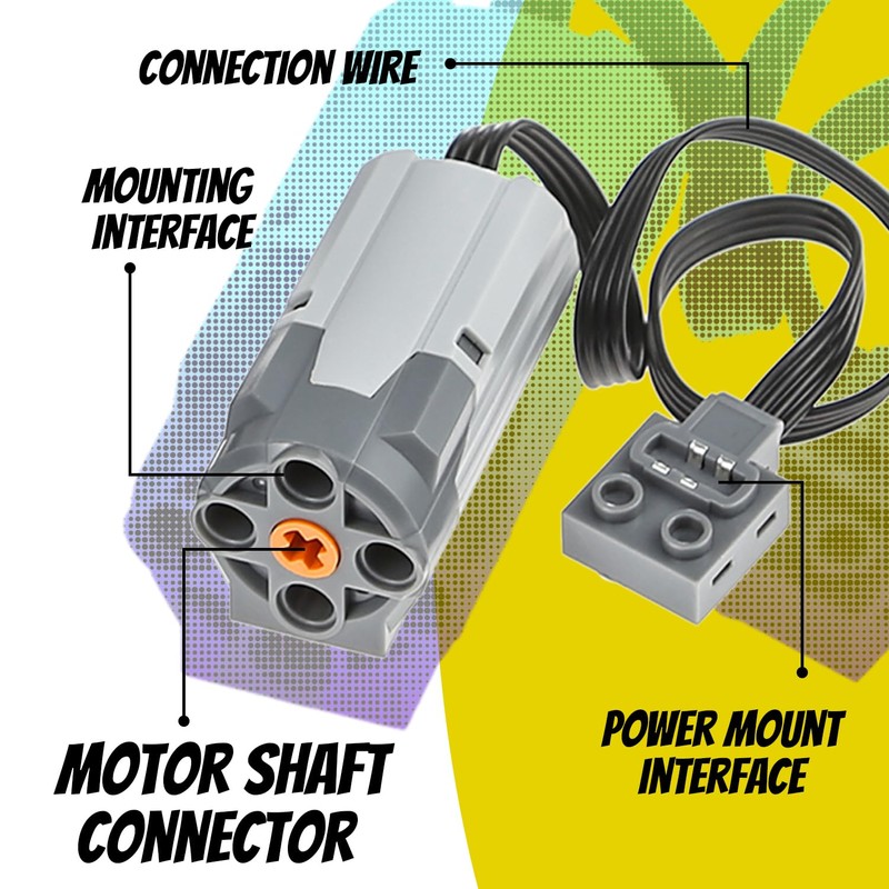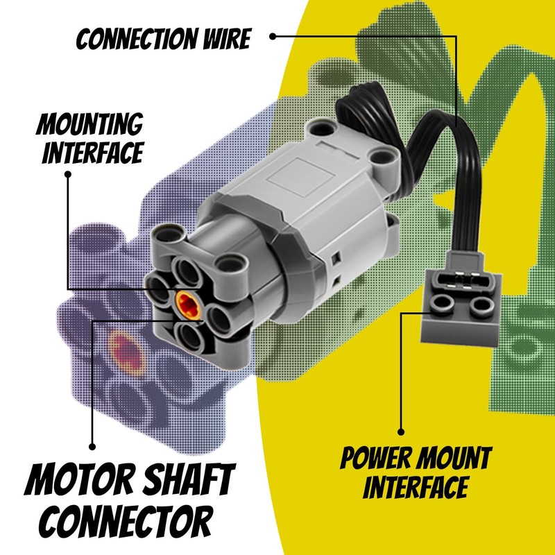 - M Motor can be connected to technic parts such as gears, shafts, etc.