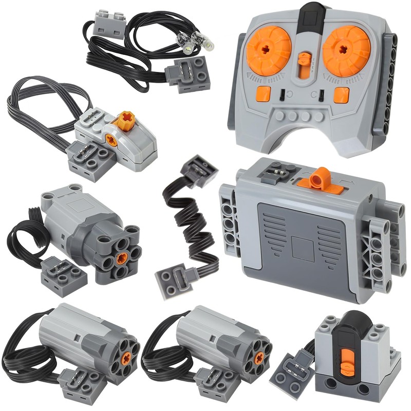 - Technic-motors set: 2*M-Motors(8883),1*L-Motor(88003),1*AA-Battery-Box(8881), 1*IR-Speed-Remote-Control(8879), 1*IR-Receiver(8884), 1*Switch(8869), 1*Light-Wire(8870) and 1*25cmExtension-Wire