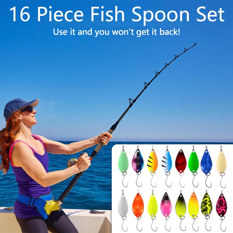 Zyluniy 16 Piece Trout Spoon Set, High-Quality Trout Bait & Sea Trout Blinker, Perfect for Trout Fishing, Includes Novelty Bait Trout, Blinker Fishing Accessories for Trout, Perch, Pike