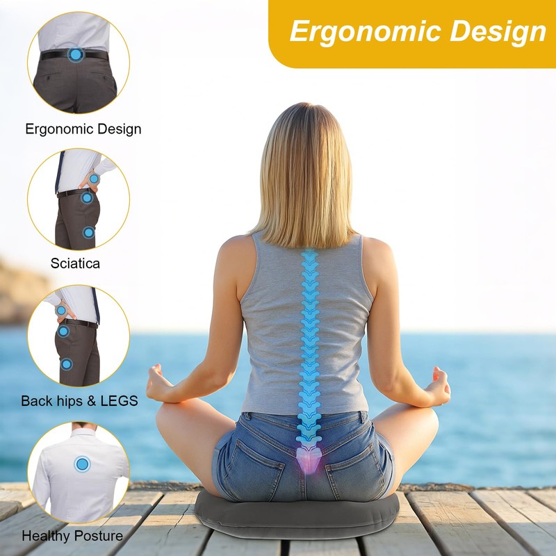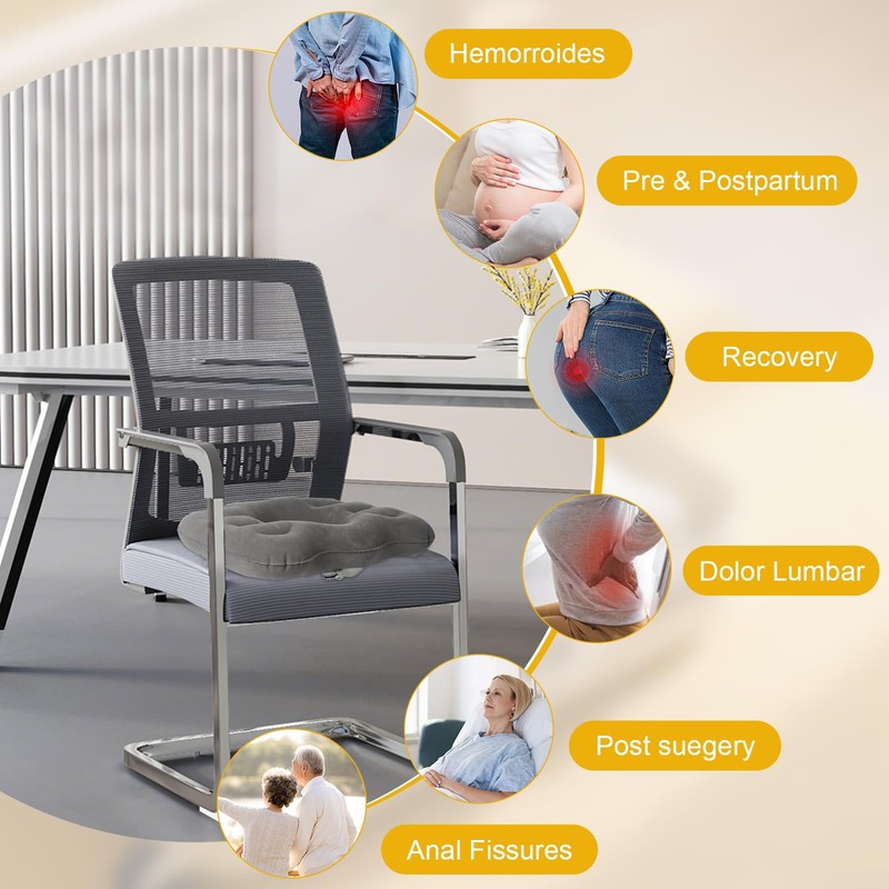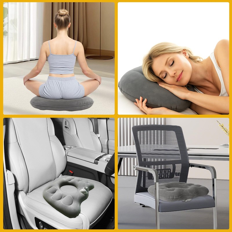 - 【Ergonomisches Design】Dieses aufblasbare Sitzkissen mit Doughnut-Design reduziert den Druck auf Steißbein, Hämorrhoiden undwirbelsäule, Sitzkissen Orthopädisch ideal für Menschen mit Rückenschmerzen, Postop-Erkrankungen oder längeren Sitztagen im Büro oder Auto.