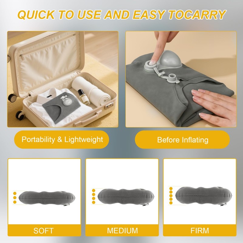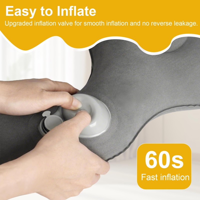 - 【Aufblasen durch Drücken】Dies ist ein aufblasbares orthopädisches Sitzkissen. Durch wiederholtes Drücken der eingebauten Pumpe können Sie Ihr Sitzkissen in 30-60 Sekunden aufblasen und mit dem Schnellablassventil die Luft noch schneller ablassen