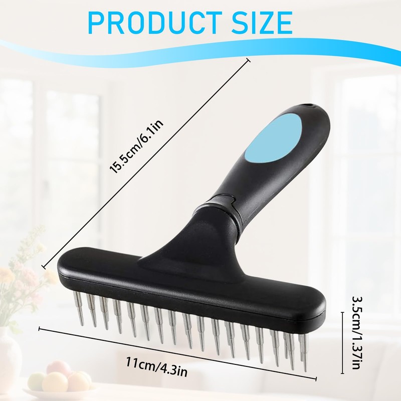 - Optimised size for effective brushing: With a length of 15.5 cm and a double comb width of 11 cm, this portable carpet rake offers a perfect grip and a maximum work surface. The dog brush & cat brush reach deep into the coat to remove knots, tangles and excess undercoat.