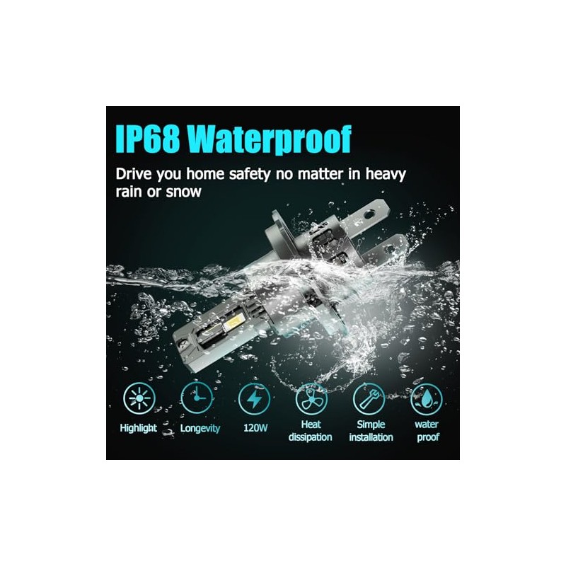 - **Ultra-Bright Illumination**: Achieve up to 16,000 lumens (6000K cool white) for 400% brighter light output compared to halogen bulbs, ensuring clearer visibility on dark roads.
