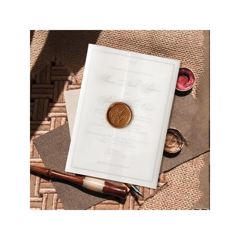 ZYNERY 70 Pack Pre-folded Vellum Jackets for 5x7 Invitations, Vellum Paper 5x7 for Invitations, Transparent Paper Vellum Envelopes for Wedding Invitations Wraps - Translucent Birthday Invitation Paper