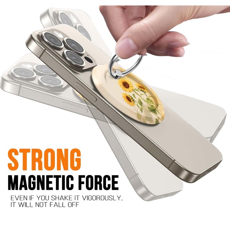 ZypopZy Compatible with MagSafe Phone Ring Holder - Cute Magnetic Phone Grip Stand, Adjustable & Removable Ring Holder for Smartphone and Tablets, Vibrant Sunflower