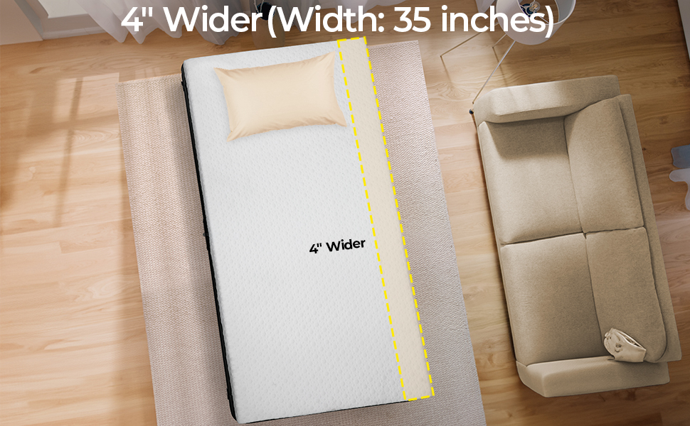 4in Wider: Considering the issue of comfort, we widened it by 4 inches. The size of the bed is 75*35 inches. You can turn over in bed without restraint when sleeping.