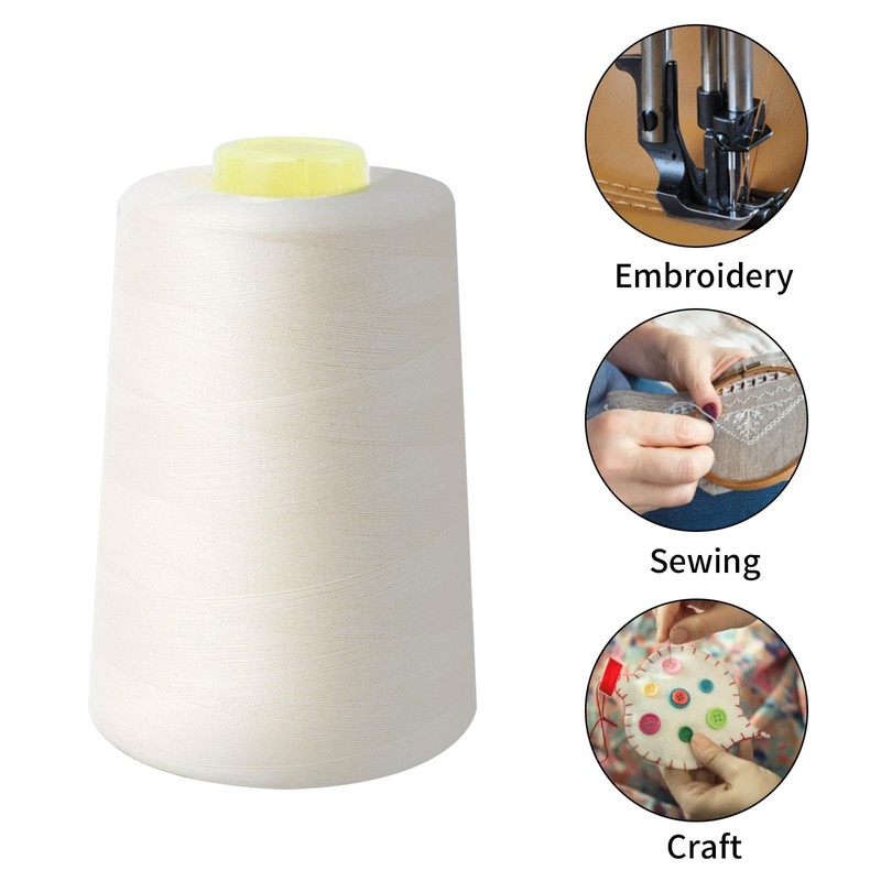 Zythrem Overlocking Thread Sewing Thread Cone 4x5000 Yards All Purpose Polyester Sewing Thread Overlocking Sewing Machine Polyester Thread 40S/2 for Sewing Quilting Piecing Serger and Overolck (Cream)